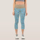 Whimsical Glittery Leaves on Teal Capri Leggings