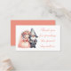 Express your gratitude in the most charming way with this whimsical gnome wedding thank you place card. Featuring a delightful watercolor illustration, this design showcases a joyful gnome bride and groom, dressed in a romantic blend of soft orange and grey tones. The bride’s flowing pink gown and floral crown perfectly complement the groom’s dapper suit and signature pointed hat, creating a fairy tale-inspired look that adds warmth and charm to your wedding table decor.