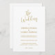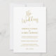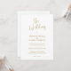 Elegant and whimsical, this modern wedding invitation features a minimalist design with customisable gold calligraphy on a crisp white background. The combination of the sleek white backdrop and personalised gold script typography creates a timeless and sophisticated look, perfect for any wedding celebration.