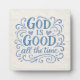 This design features the uplifting phrase "God is Good all the time," elegantly rendered in a flowing typography. Surrounding the text are whimsical doodles brought to life with blue and purple watercolors. The soft shades of blue and purple blend harmoniously, creating a calming backdrop that invites reflection and peace.