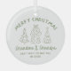 Featuring a whimsical festive design it’s a timeless memento that captures one of life’s most precious moments. Each elegant round ceramic ornament includes a gold hanging string and is available in six festive colors — Black, Green, Blue, Red, Pink, and Sage Green.