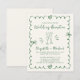 Retro-inspired light cream budget wedding reception invitation that features a green wavy scallop frame adorned with coquette bows, whimsical hand drawn illustrations of hearts and champagne glasses, and "Wedding Reception" and the names of the bride and groom in a fun, playful green script. NOTE: This budget-friendly paper is thin, similar in weight to photo paper -- a larger and thicker 5x7 traditional card stock version is also available (message us for the link).