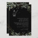 Whimsical Greenery Black and Gold Monogram Wedding Invitation