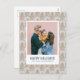 This holiday photo card is perfect for those who love a modern, Scandi look for the holidays. The whimsical grey and gold tree pattern provides a cool, on trend backdrop to frame your special family or pet photograph. Personalise this card with your own image, greeting and names.