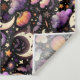 A magical Halloween night unfolds in this whimsical pattern, filled with glowing crescent moons, playful bats, and radiant stars set against a deep black sky. Bright orange pumpkins, swirling clouds in shades of purple and grey, and delicate spiderwebs weave together a lively yet enchanting scene. The design blends spooky charm with a dreamy storybook feel, perfect for evoking festive autumn nights and imaginative seasonal whimsy. AI generated artwork.