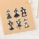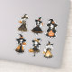 Embrace the Halloween spirit with this charming set of 6 stickers, each showcasing an adorable little witch in various whimsical poses. Perfect for adding a touch of magic to your stationery, crafts, or party favours. These cute, vector art-style witches are adorned in pumpkin-shaped dresses, enhanced with intricate arabesques in black, white, and glittery gold, making them a delightful addition to any Halloween collection.