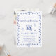 Romantic wedding reception invitation featuring a french blue wavy frame adorned with coquette bows, whimsical hand drawn illustrations of a heart, stars and wine glasses, and "Wedding Reception" and the names of the bride and groom showcased in a playful blue script. Add your photo on the back.