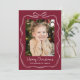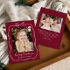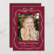 Whimsical Hand-Drawn Bow Frame Burgundy 2 Photo Holiday Card