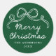 Whimsical Hand-Drawn Bow Green Merry Christmas Classic Round Sticker