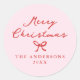 Whimsical Hand-Drawn Bow Pink Christmas Classic Round Sticker