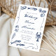 Whimsical Hand Drawn Coastal Navy Blue Wedding Invitation