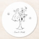 Whimsical Hand Drawn Couple Wedding Engagement Round Paper Coaster