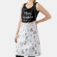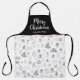 This whimsical hand-drawn pink and black Christmas kitchen apron features playful doodles of snowmen, Christmas trees, snowflakes, candy canes, bows, ice skates, and gingerbread men. Perfect for adding a fun and charming holiday touch to your cooking and baking, this unique apron brings joyful personality to every festive moment in the kitchen.