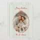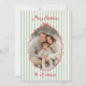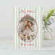 Send warm holiday cheer with this elegant striped Christmas photo card. Featuring a soft green and white striped background, this design beautifully frames your family photo with a festive red scalloped border and bow accent. The cheerful “Merry Christmas” greeting appears at the top in a playful script, while your family name is highlighted at the bottom for a personalised touch.