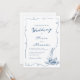 This whimsical hand drawn white and navy blue nautical wedding invitation features a squiggly frame with a sailboat in the lower right corner.