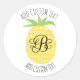 Whimsical Hand-drawn Pineapple Monogrammed Classic Round Sticker