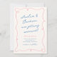 Whimsical Hand Drawn Pink & Blue Wedding + Details Invitation