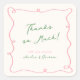 Whimsical Hand Drawn Pink & Green Thank You Square Sticker