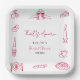 The Whimsical Hand Drawn Quirky Bridal Shower Party Plate features a playful Italian-inspired design with a clean and modern look. The plate showcases charming red line art illustrations arranged around the border.