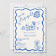 This trendy hand drawn style illustrated engagement invitation features a scribble disco ball and dinner table elements. The whimsical and quirky design includes handwritten font and celebration doodles. Cobalt Mediterranean blue style for classic yet modern wedding stationary.