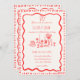 Whimsical Hand Drawn Red Bow Wavy Wedding Invitation