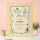 A Whimsical hand-drawn That's amore Italian bridal shower welcome sign featuring butter yellow stripes, quirky illustrations, and doodles in Mediterranean blue. Whether it's her Prosecco brunch, boho chic bridal event, or summer garden party, this modern handwritten script-inspired acrylic sign is perfect for a bride-to-be looking for fun and unique celebrations with a touch of elegance before her big day. Do not hesitate to contact me if you need any help with customisation.