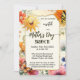 A fun and whimsical Mother's Day brunch or lunch invitation featuring a laughing sun on a watercolor wildflower design. On the back is a retro polka dot design.