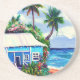 Decorate your tiki bar with these artsy beach cottage coasters depicting a colourful tropical beach house.