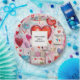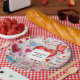 Paper plates with a whimsical pattern. Scrapbook style doodles and scribbles. Red and pink hearts and various letters and envelopes scattered all around.