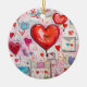 Whimsical Hearts and Love Letters Pattern Ceramic Tree Decoration