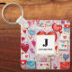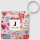 Whimsical Hearts and Love Letters Pattern Key Ring