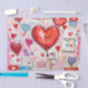 Tissue paper with a whimsical pattern. Scrapbook style doodles and scribbles. Red and pink hearts and various letters and envelopes scattered all around.