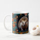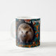 This coffee mug features an adorable hedgehog nestled at the center of a lush, vibrant floral arrangement. The intricate design showcases a mix of teal, orange, and golden hues, with delicate flowers and foliage swirling in a harmonious pattern. Perfect for nature lovers and those who adore charming woodland creatures, this coffee mug adds a whimsical and elegant touch to any gift.