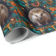 This wrapping paper features an adorable hedgehog nestled at the center of a lush, vibrant floral arrangement. The intricate design showcases a mix of teal, orange, and golden hues, with delicate flowers and foliage swirling in a harmonious pattern. Perfect for nature lovers and those who adore charming woodland creatures, this wrapping paper adds a whimsical and elegant touch to any gift.