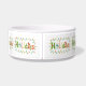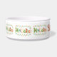 Fun, whimsical holiday bowl for dogs. Cute gift for furry friends this season. Colorful design with holly, snowman, candy cane, candle, pinecone, cardinal and fur branch surrounded by christmas lights. Just add dogs name.