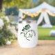 An illustration of a whimsical hooded grasshopper with facial hair. The insect is perched on grass. The grass is curled down in circle shape make a frame around a M. M is short for monogram and can be personalised for your own initial.