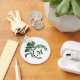 An illustration of a whimsical hooded grasshopper with facial hair. The insect is perched on grass. The grass is curled down in circle shape make a frame around a M. M is short for monogram and can be personalised for your own initial.