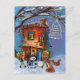 Whimsical House and Winter Woodland Friends Holiday Postcard