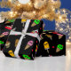 Red, black hand drawn whimsical cartoon ice cream, cherries, ice cream bars, ice cream sundaes, banana splits birthday gift wrap.