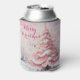 Whimsical Impressionistic Christmas Tree Pink Can Cooler
