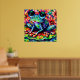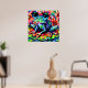 Whimsical Impressionistic Floral Frog Green Blue Poster