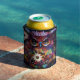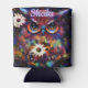 Whimsical Impressionistic Floral Owl Personalised Can Cooler