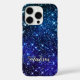 Whimsical stylish iridescent blue Glitter monogram girly Iphone case. Inspired by the night sky, this iPhone case has a holographic design with faux glitter in starry shades of blue and Grey. The iridescent sparkle effect creates a celestial look, adding a girly and mystical touch to the phone.