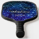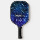 Whimsical iridescent blue Glitter monogram Pickleball Paddle