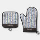 Cooking in style with our Whimsical Italian Food Illustration Blue Stripes Oven Mitt & Pot Holder Set. Featuring cute hand drawn illustration of Mediterranean food on stripes pattern. Personalize it with your family name for a unique touch.
