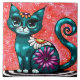 Whimsical Kitty Cat Sitting on Rug Floral Teal