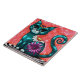 Whimsical Kitty Cat Sitting on Rug Floral Teal Tile