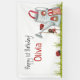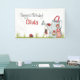 Cute, girly and personalised happy 1st Birthday banner featuring an adorable girl ladybug sitting on swing, which is hanging from an adorable garden watering can house, two additional ladybugs join in this whimsical and magical garden party scene. Personalise this beautiful birthday party banner with girl’s name and customise greeting as needed.