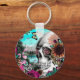 Whimsical landscape skull with sunflowers, roses, and butterflies in bold, girly colour palette.