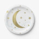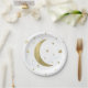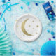 Whimsical Light Blue & Gold Moon Stars Baby Shower Paper Plate